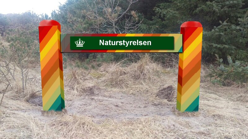 "Alle ved, at jeg er glad for farver. Jeg har altid syntes, at Naturstyrelsens gamle svenskrøde skilte var kedelige og idéforladte", siger Per Arnoldi i dagens presse-meddelelse.