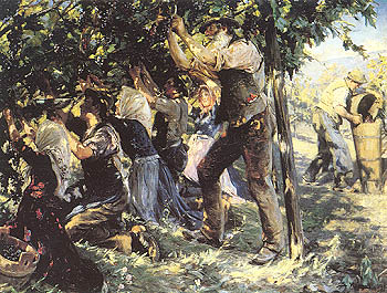 P.S. Krøyer 1851-1909 »Vinhøst i Sydtyrol«. 1901. 90x120 cm. Solgt i 1983 for 44.000 kr. på byggekongen Bøje Nielsens tvangsauktion. Solgt året efter hos Sotheby's i London for 909.000 kr. (Privateje) Krøyer-biografi © kunstnyt.dk