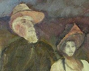 i forgrunden til højre selvportræt af kunstneren, olie på