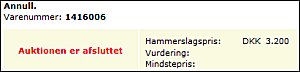 en tysk auktion vurderet til 500 euro uden at blive solgt. Så