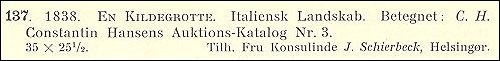 skrev vi 1. november 2009 Var det et ægte guldaldermaleri Lauritz.com vurderede til beskedne 3.500 kr. og solgte for 10.000? ![]() Lauritz.com: »Constantin Hansen. Portræt af herre. Olie på lærred. Sign. samt dateret 1835. 37 x 27 cm. Vurdering 3.500 kr.« 3.500 kr. er ikke meget for et arbejde af en af guldal- dertidens mest berømte malere, som kan koste hundredtusindvis af kroner. Og var maleren ikke i Italien i 1835, hvor han var stærkt optaget af sit berømte maleri Et selskab af danske kunstnere i Rom, færdigt 1837? Og hvor er proveniensen på billedet? Bagpå står Isilingen Vordingborg, det kendte gods ved Vordingborg. Der står også navnet Professorinde A.M. Hammerich. A.M. var gift med godsets ejer Martin Hammerich, men var hun professorinde? Og hvem har skrevet bagsideteksterne? Lauritz.com burde have interesseret sig lidt mere for billedets proveniens, det praler de konstant med, at de gør for alles vedkommende. Vi er ikke sikker på, maleriet er af Constantin Hansen. Det kunne tyde på, at Lauritz-eksperterne også havde deres tvivl pga den meget lave vurdering. Billedet er, så vidt vi skyndsomt har ledt, ikke at finde nogen steder i litteraturen. Og hvorfor er billedet fjernet pga af copyright? Der er ikke copyright på en maler, som døde i 1880. Se siden med det fjernede maleri, hvor der står: Lauritz.com har meget ofte fjernet billederne med begrundelsen »På grund af copyright afgift på varen kan billederne ikke vises« uden at der er copyright-afgift. Hvor havner mon de penge?. Teksten herover dateret 1. november er lidt af »hånetekst«. I mere end en uge stod samme tekst, uden henvisning til Hanno- vers værk om maleren. Halvanden måned før havde Lauritz.com solgt et andet af Constantin Hansen, med tydelig henvisning til Hannover (højre spalte). Det indikerer, at Lauritz-eksperterne ikke selv har bogen og derfor ikke har foretaget de undersøgelser, som de konstant praler med, at de gør. Oplysningerne på bagsiden af billedet herunder fører ellers direkte til Hannover nr. 92, som er gengivet under billedet.